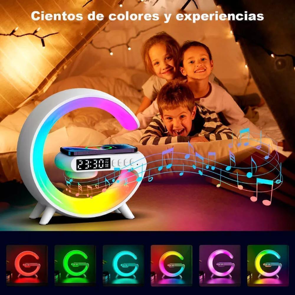 Modos de iluminación versátiles: Con su altavoz inteligente compatible con Bluetooth y modos de luz coloridos, la lámpara de mesa ofrece una variedad de opciones de iluminación para adaptarse a diferentes estados de ánimo y ocasiones. El usuario puede ajustar fácilmente los modos, creando un ambiente vibrante o relajante que coincida con sus preferencias. (Nota: Esta es una versión mini, altura: 6.1 pulgadas, longitud: 5.7 pulgadas, ancho: 2 pulgadas). )Compañero de cabecera: La luz suave y suave emitida por la lámpara de ambiente sirve como un compañero relajante para una buena noche de sueño. Se puede ajustar para que coincida con el ritmo de la música, ayudando a mejorar el estado de ánimo y promover la relajación. Experimenta seis modos de color que se sincronizan con tu música para una experiencia inmersiva.Carga sin esfuerzo: La luz nocturna incorpora una función de carga inalámbrica que simplifica el proceso de carga de teléfonos inteligentes. Los usuarios pueden cargar cómodamente sus dispositivos colocándolos en la lámpara, eliminando la necesidad de cables de carga enredados y asegurando una solución de carga sin complicaciones y de fácil acceso. (Nota: el teléfono debe tener capacidades de carga inalámbrica y estar conectado.)Carga USB rápida: La lámpara de noche se puede cargar completamente en 1-2 horas con una conexión USB. Esto permite un uso flexible en varios lugares, como mesitas de noche, dormitorios, salas de estar, hogares y oficinas, proporcionando una iluminación confiable cuando sea necesario.Decoración moderna y versátil: Con su diseño moderno y características multiusos, la lámpara de mesa LED mejora sin esfuerzo el ambiente de cualquier habitación.